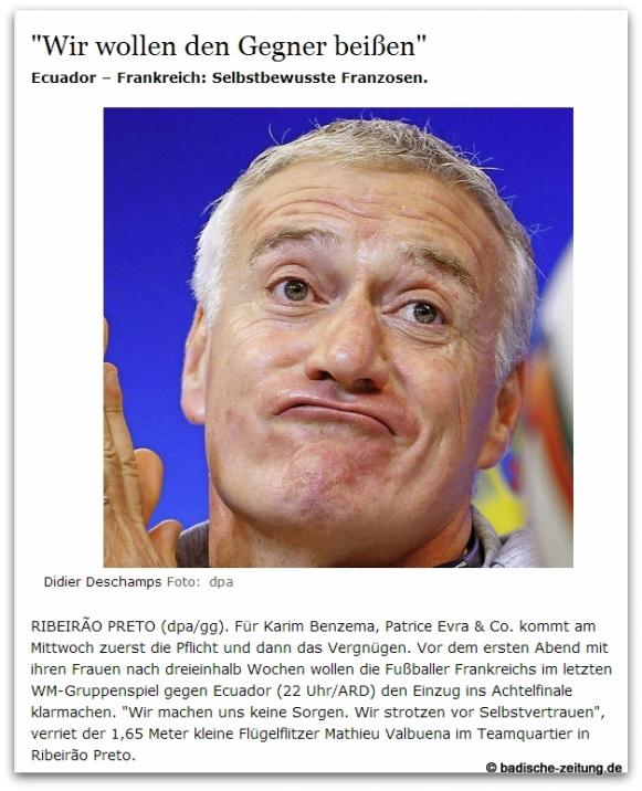 In Gruppe E kämpfen Ecuador und die Schweiz um den letzten Achtelfinalplatz. Ecuador im Moment 2 Tore in der Tordifferenz besser. Gegner sind allerdings die starken Franzosen, während die Schweiz gegen das bislang punktlose Honduras antritt. Verliert Ecuador gegen Frankreich hat auch Honduras noch eine Chance auf Platz 2. Sie müßten dann mit 2 oder 3 Toren Differenz gegen die Schweiz gewinnen. Für Spannung ist also mal wieder gesorgt.
