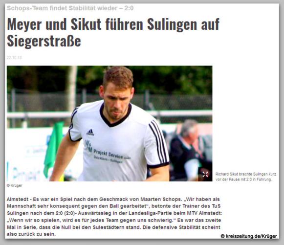 Sonntag, 15.00 Uhr: TUS Sulingen - SV Ramlingen-Ehlershausen 0:0