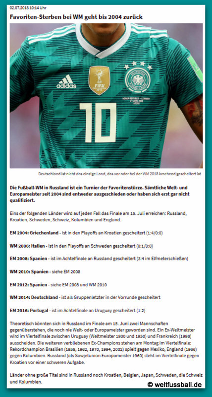 2. Juli 2018: Favoriten-Sterben bei der WM in Russland