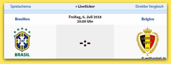 6. Juli 2018, 20.00 Uhr: WM Viertelfinale Brasilien - Belgien 1:2