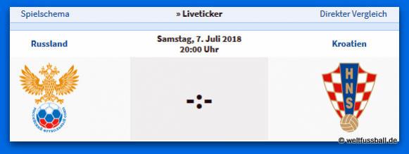 7. Juli 2018, 20.00 Uhr: WM Viertelfinale Russland - Kroatien 5:6 n.E.
