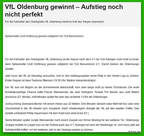 26. Mai 2018: VfL Oldenburg verpasst vorzeitigen Aufstieg