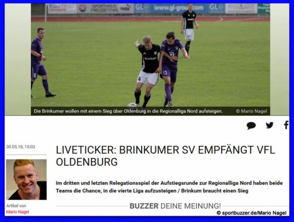 30. Mai 2018, 19.30 Uhr: Brinkumer SV - VfL Oldenburg 0:4