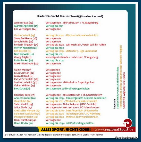 Kader Eintracht Braunschweig - Stand 2. Juni 2018