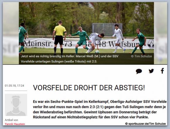 1. Mai 2018: SSV Vorsfelde - TUS Sulingen 2:3