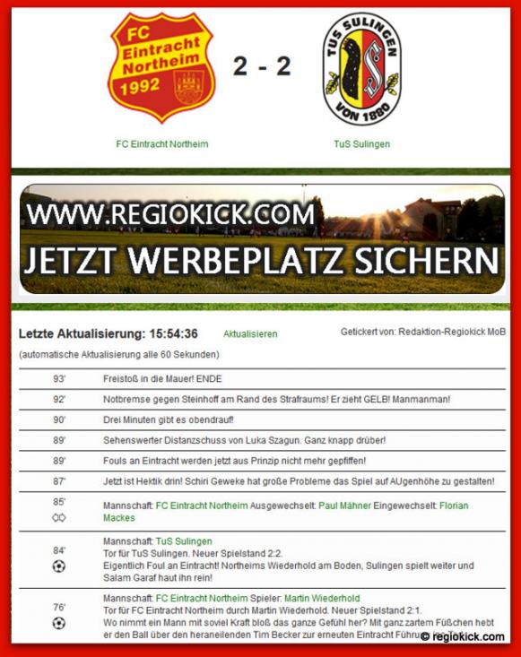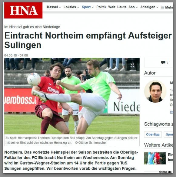 Sonntag, 6. Mai: FC Eintracht Northeim - TUS Sulingen 2:2