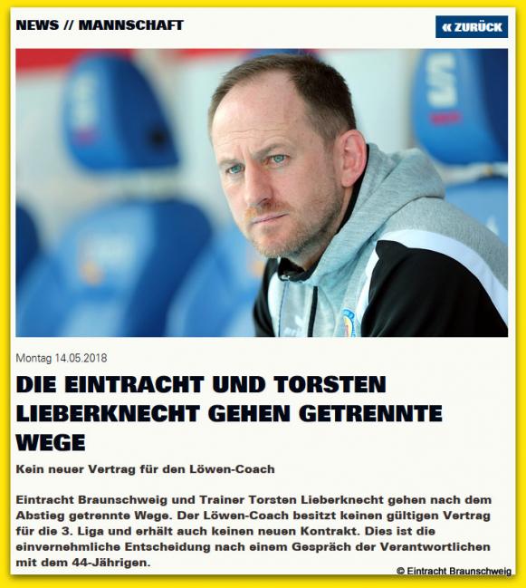 14. Mai: Eintracht Braunschweig und Torsten Lieberknecht trennen sich