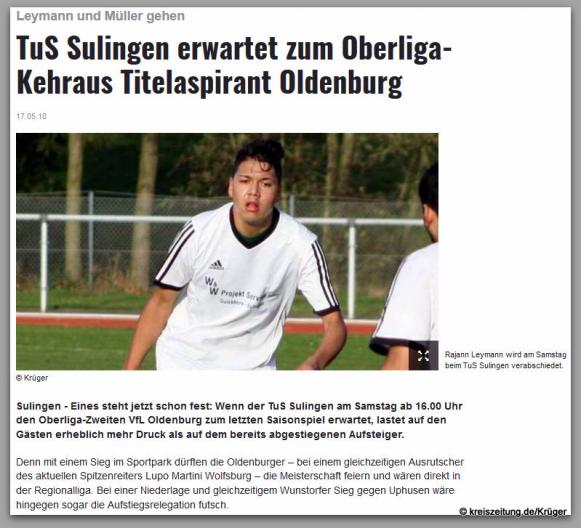 17. Mai 2018: TUS Sulingen --- Leymann und Müller gehen
