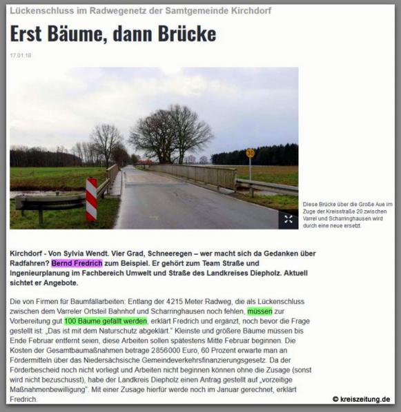 17. Januar 2018: Baumfrevel in 27245 Kirchdorf geplant