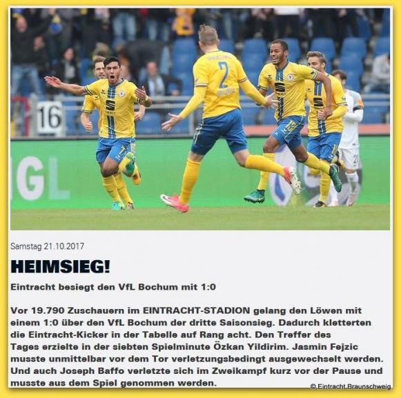 21. Oktober 2017: Eintracht Braunschweig - VfL Bochum 1:0