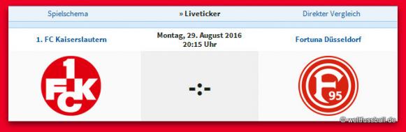 Montag, 20.15 Uhr: 1. FC Kaiserslautern - Fortuna Düsseldorf 0:0
