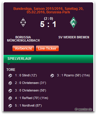 5. Februar: Borussia Mönchengladbach - SV Werder Bremen 5:1