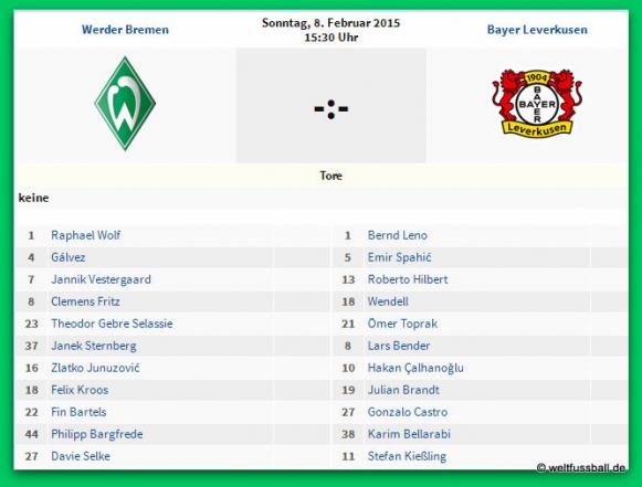 Sonntag, 8. Februar, 15.30 Uhr: SV Werder Bremen - Bayer Leverkusen