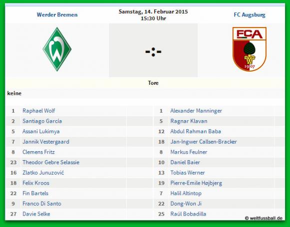Samstag, 15.30 Uhr: SV Werder Bremen - FC Augsburg 3:2