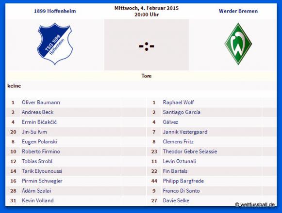 4. Februar: TSG 1899 Hoffenheim - SV Werder Bremen 1:2