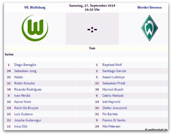 Samstag, 18.30 Uhr: VfL Wolfsburg - SV Werder Bremen 2:1
