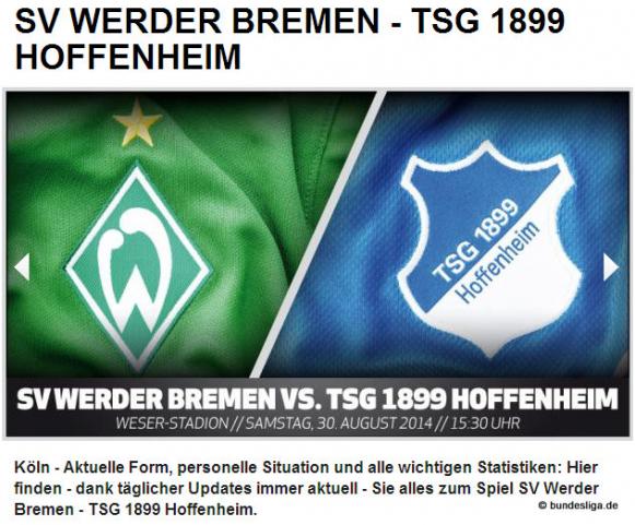 Samstag, 15.30 Uhr: SV Werder Bremen - TSG Hoffenheim 1:1