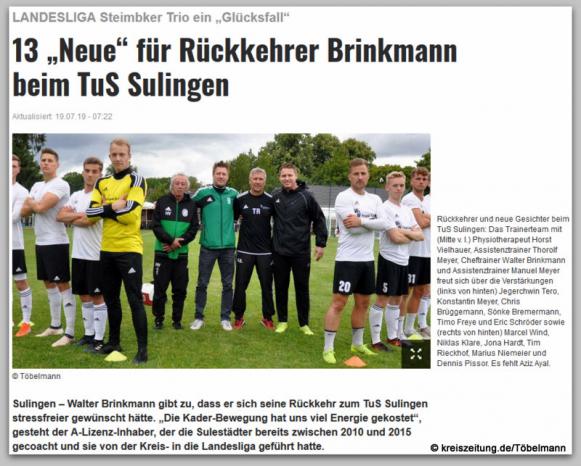 19. Juli 2019: 13 Neue für TUS Sulingen - Landesliga Hannover