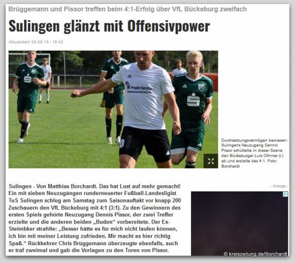 Samstag, 3. August, 16.00 Uhr: TUS Sulingen - VfL Bückeburg 4:1
