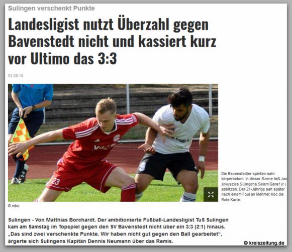 1. September 2018: TUS Sulingen - SV Bavenstedt 3:3