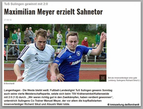 Sonntag, 26. August: TSV Krähenwinkel/Kaltenweide - TUS Sulingen 0:2