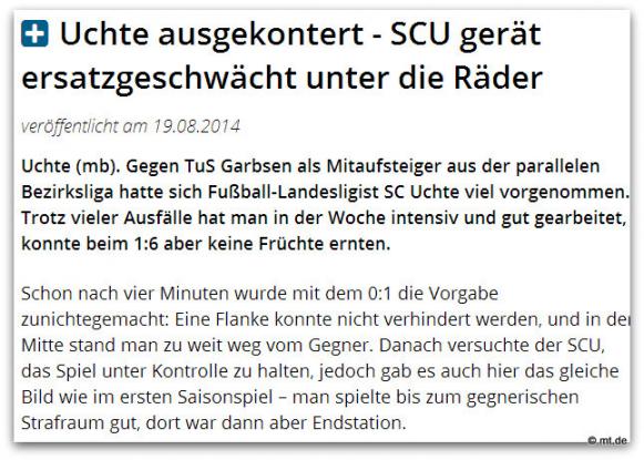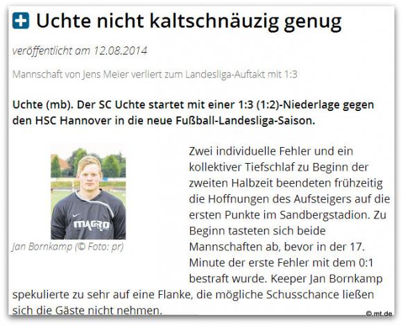 Auch SC Uchte startet mit Heimniederlage in die Landesligasaison 2014/2015.
