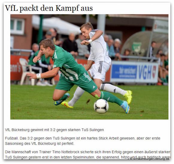 15. August: VfL Bückeburg - TUS Sulingen 3:2