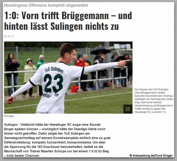 7. Oktober: TUS Sulingen - Heeslinger SC 1:0