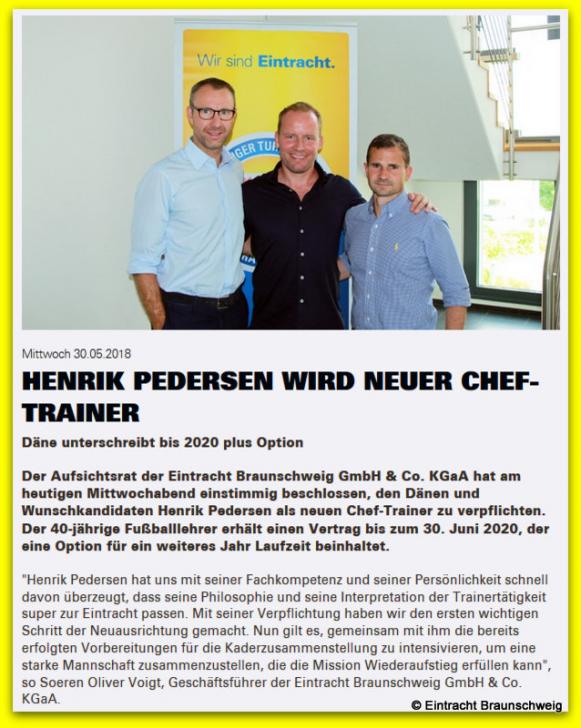 30. Mai 2018: Henrik Pedersen neuer Trainer von Eintracht Braunschweig