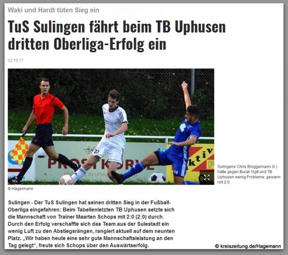 1. Oktober 2017: TB Uphusen - TUS Sulingen 0:2
