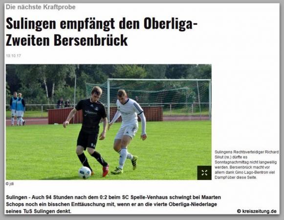 22. Oktober 2017: TUS Sulingen - TUS Bersenbrück 0:2