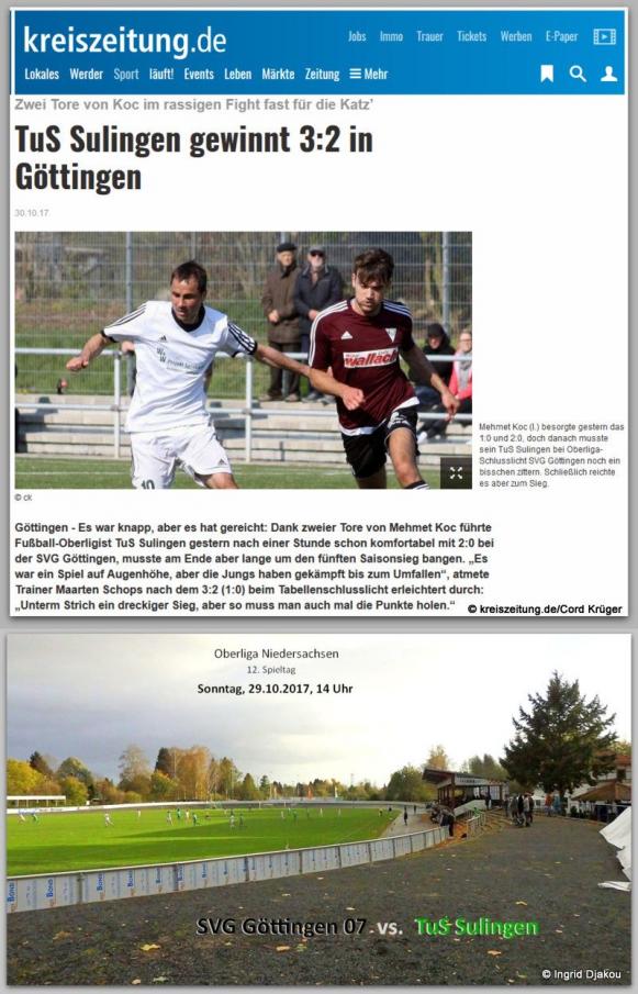 29. Oktober 2017, 14.00 Uhr: SVG Göttingen 07 - TUS Sulingen 2:3