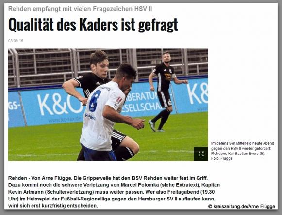 Freitag, 9. September, 19.30 Uhr: BSV Rehden - Hamburger SV II 0:2