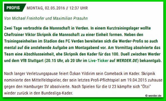 16. Mai 2016, 12.30 Uhr:: U19 Halbfinale SV Werder Bremen - TSG Hoffenheim