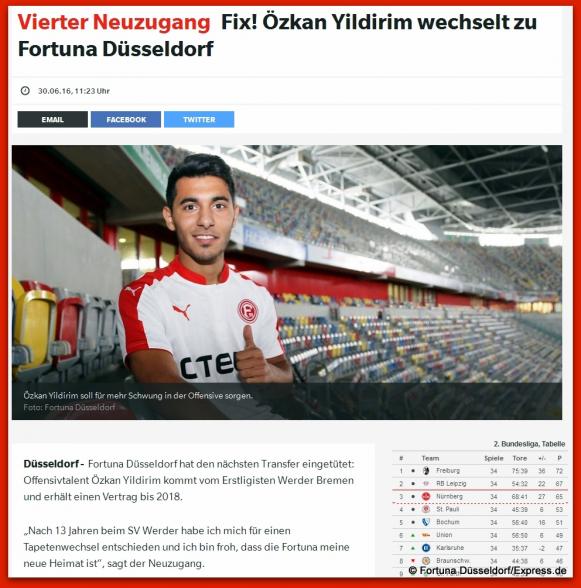 30. Juni: Özkan Yildirim wechselt zu Fortuna Düsseldorf