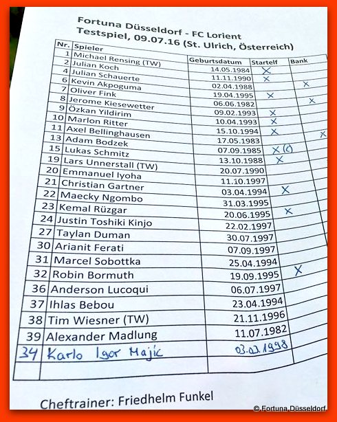 9. Juli 2016, 18.00 Uhr: Testspiel Fortuna Düsseldorf - FC Lorient 3:3