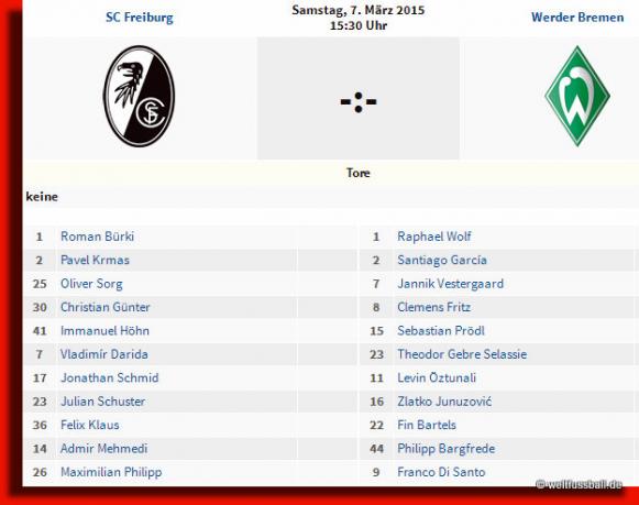 Samstag, 15.30 Uhr: SC Freiburg - SV Werder Bremen 0:1