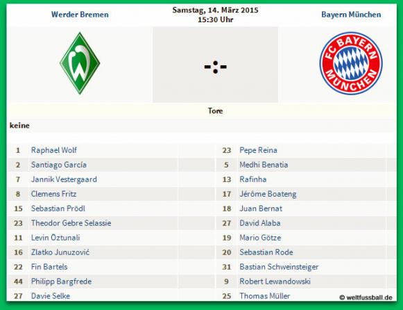 Samstag, 15.30 Uhr: SV Werder Bremen - FC Bayern München 0:4