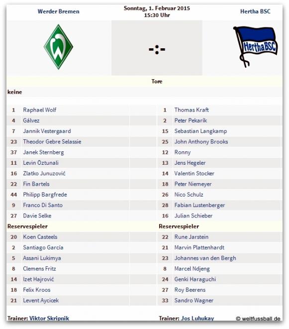 Sonntag, 15.30 Uhr: SV Werder - Hertha BSC 2:0