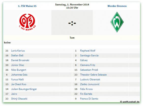 Samstag, 15.30 Uhr: FSV Mainz 05 - SV Werder Bremen 1:2