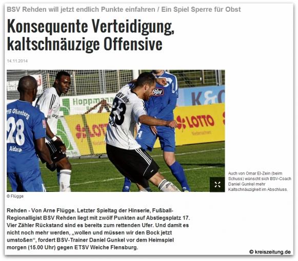 Samstag, 15.00 Uhr: BSV Rehden - ETSV Weiche Flensburg 1:3