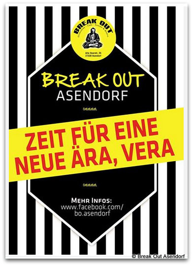 Bericht in der Kreiszeitung am 15. September: " Asendorf - Von Regine Suling. Sein mobiles Büro hat er in der Kneipe aufgebaut. Er sitzt zwischen Notebook und Telefon, während um ihn herum gewerkelt wird: Eckart Noltemeier hat noch viel vorzubereiten. Denn er hat etwas vor, das im Internet Begeisterungsstürme hervorgerufen hat: Der 34-Jährige will die Diskothek „Break Out“ wieder eröffnen.