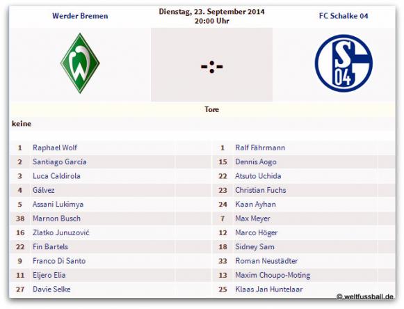 Dienstag, 20.00 Uhr: SV Werder Bremen - FC Schalke 04 0:3