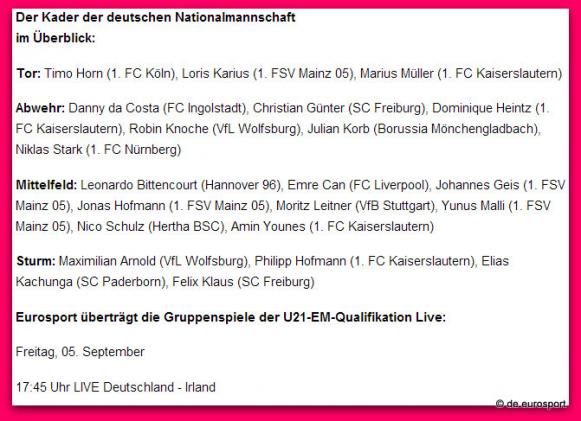 Freitag, 18.00 Uhr: U21 EM Qualifikation Deutschland - Irland 2:0