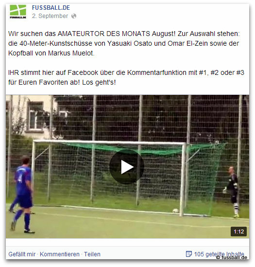 Das Traumtor von " Omardinho " nun in der Auswahl zum Amateurtor des Monats bei Fussball.de.
