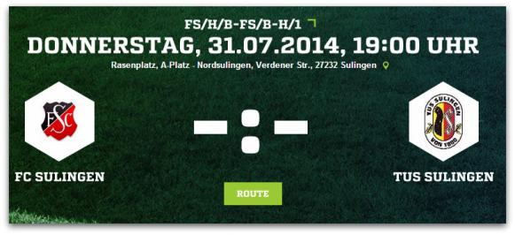 31. Juli, 19.00 Uhr: Freundschaftsspiel FC Sulingen - TUS Sulingen 2:2