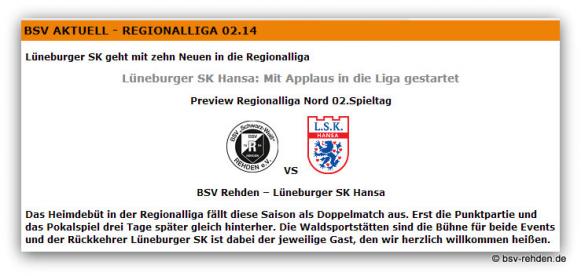 Sonntag, 3. August, 15.00 Uhr: Regionalliga Nord: BSV Schwarz-Weiß Rehden - Lüneburger SK Hansa 1:1
