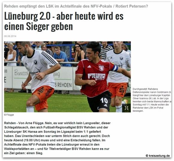 Mittwoch, 6. August, 19.00 Uhr: NFV Pokal Achtelfinale BSV Rehden - Lüneburger SK Hansa