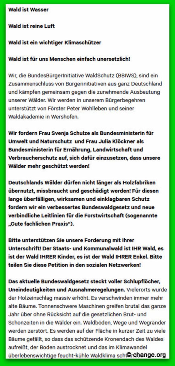 7.Juni 2021: Petion für neues Bundeswaldgesetz