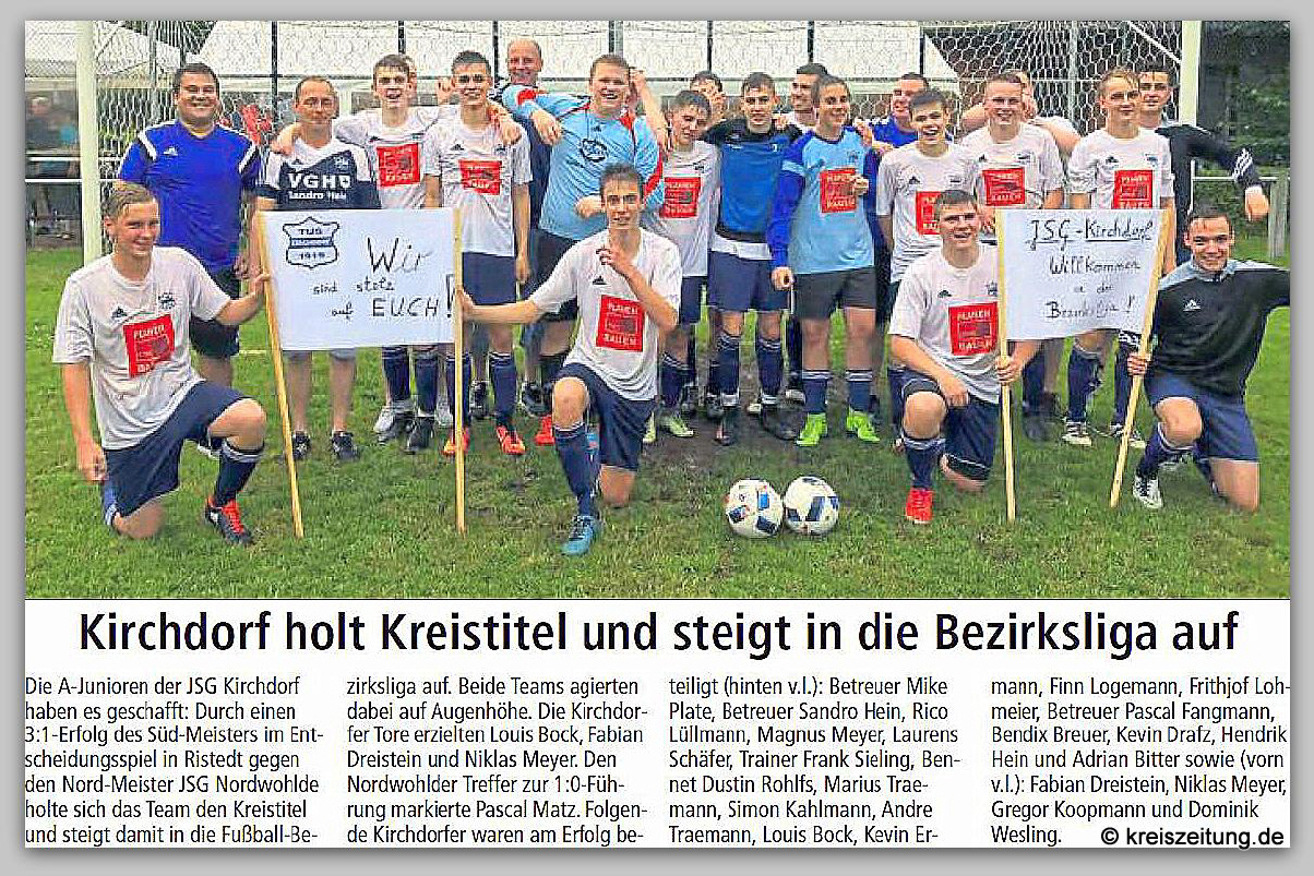 Steigt in die Bezirksliga auf: Die JSG Kirchdorf